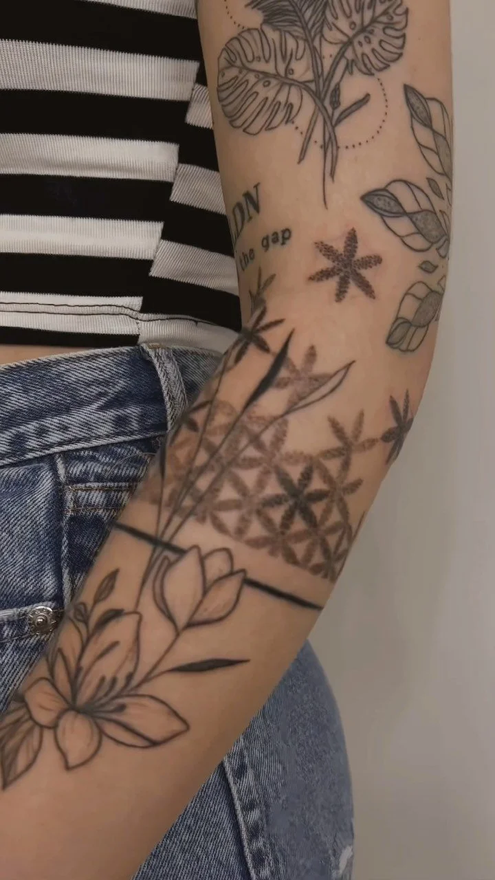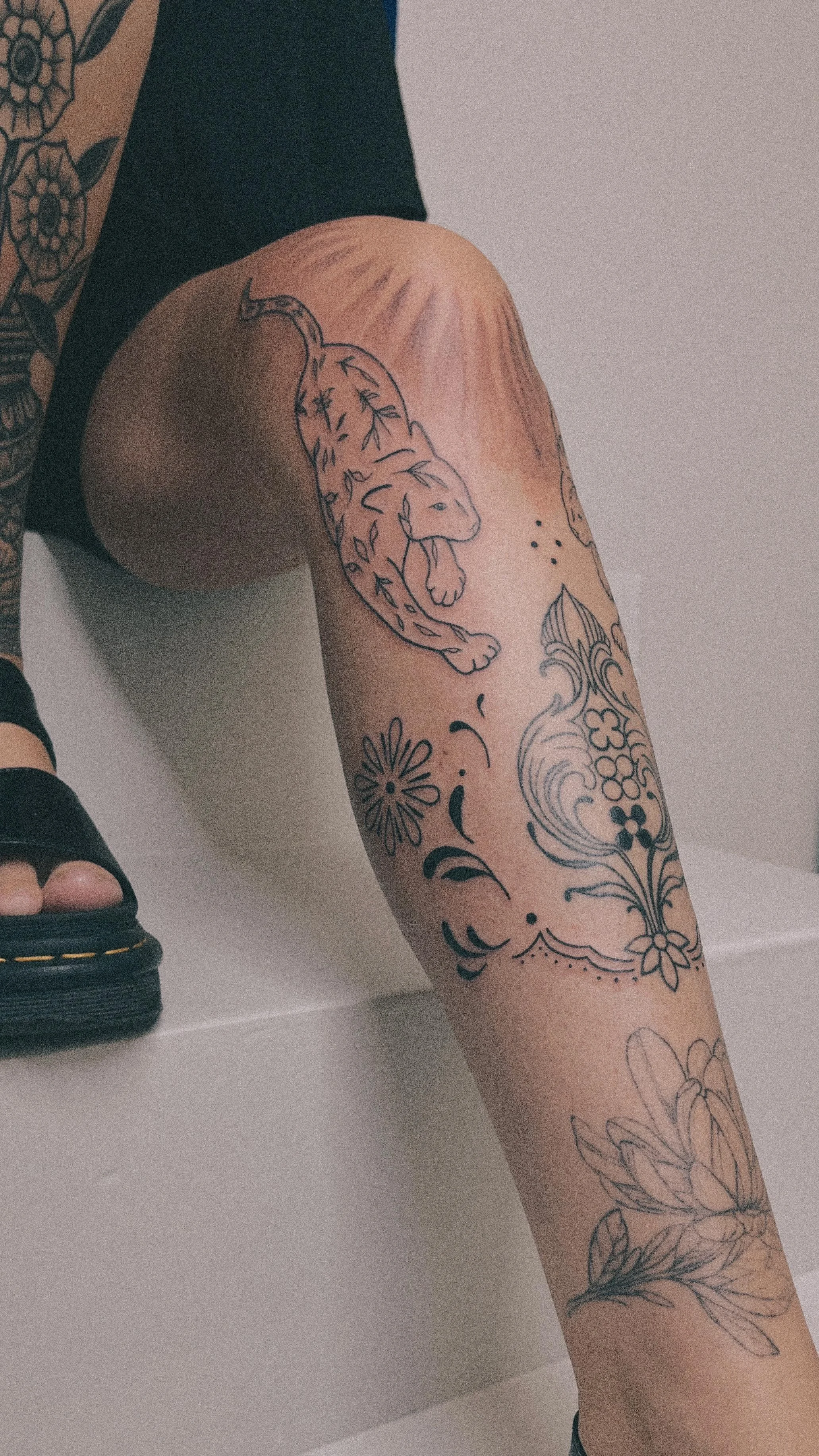 Dunja liebt es schon immer, Dinge zu kreieren und began 2021 mit dem Tätowieren, worin sie schnell ihre Leidenschaft entdeckte. In ihrer Arbeit bringt sie ihre Verbundenheit zur Natur zum Ausdruck – besonders gerne erstellt sie florale und ornamentale Motive. Sie lässt sich gerne durch Geschichten ihrer Kund:innen inspirieren und setzt diese in ihrem Stil um.